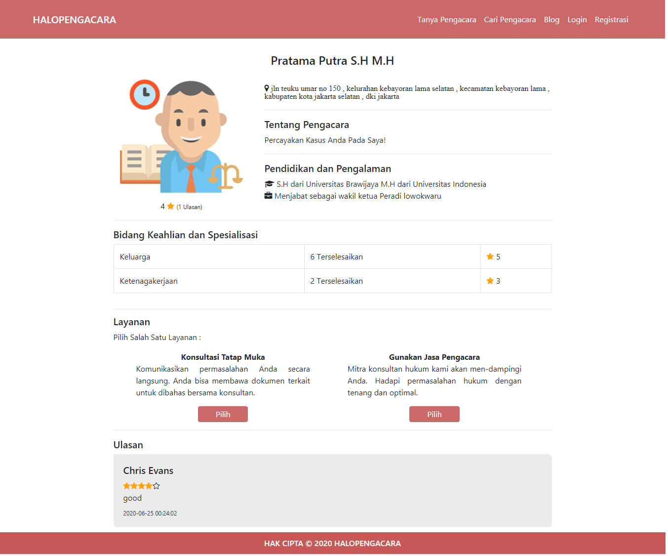 - Project URL: halopengacara.000webhostapp.com