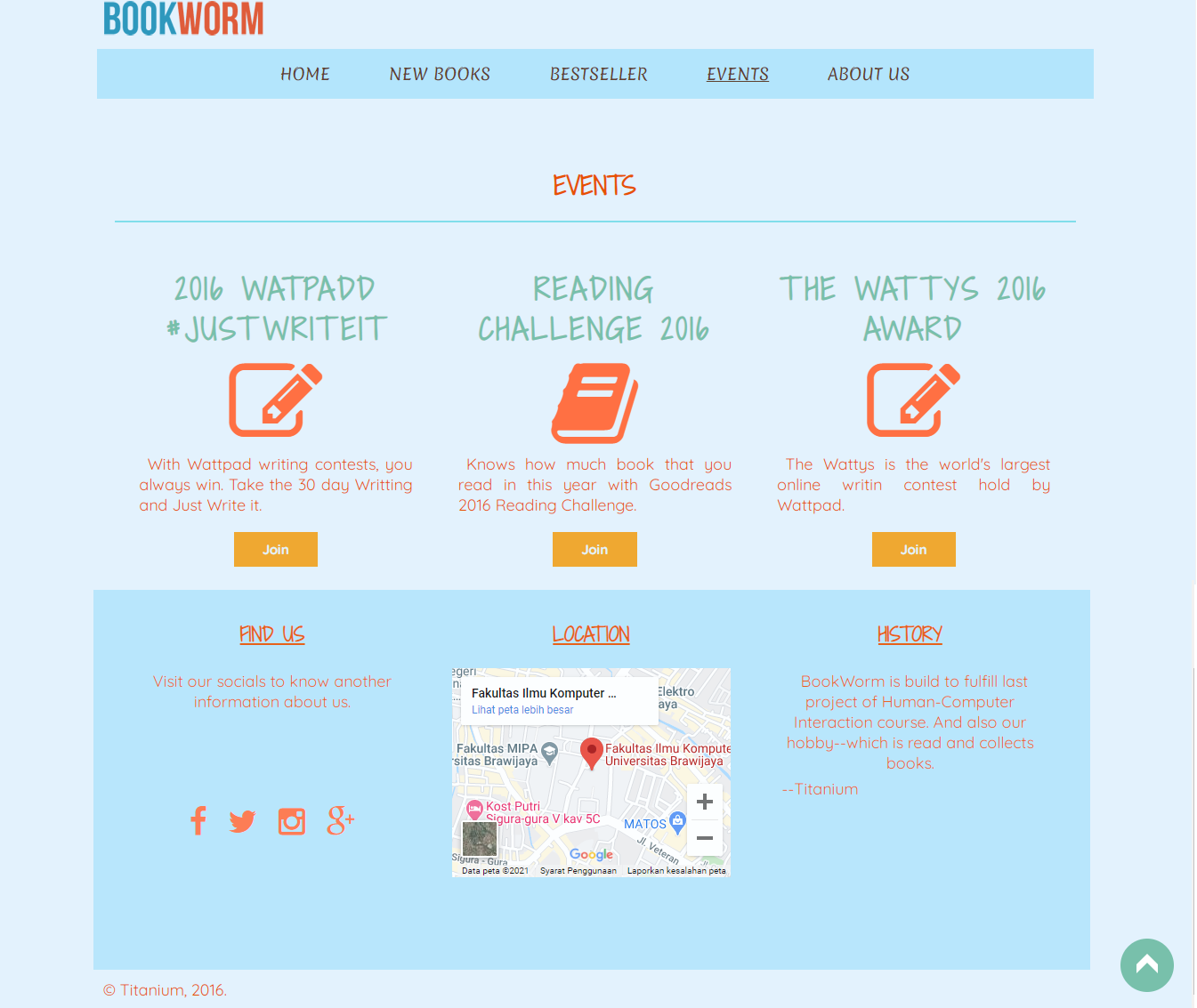 BOOKWORM is a responsive and static web that show information of fiction or non-fiction books.This web is used to notify the latest book, bestseller books, and events about books and authorship